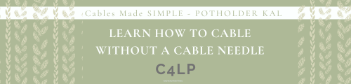 I have also created tutorials on how to knit the C2F, C2B, C2LP, C2RP, C4F and C4B without a cable needle with the same Cables Made Simple Potholder pattern. You can view them here: